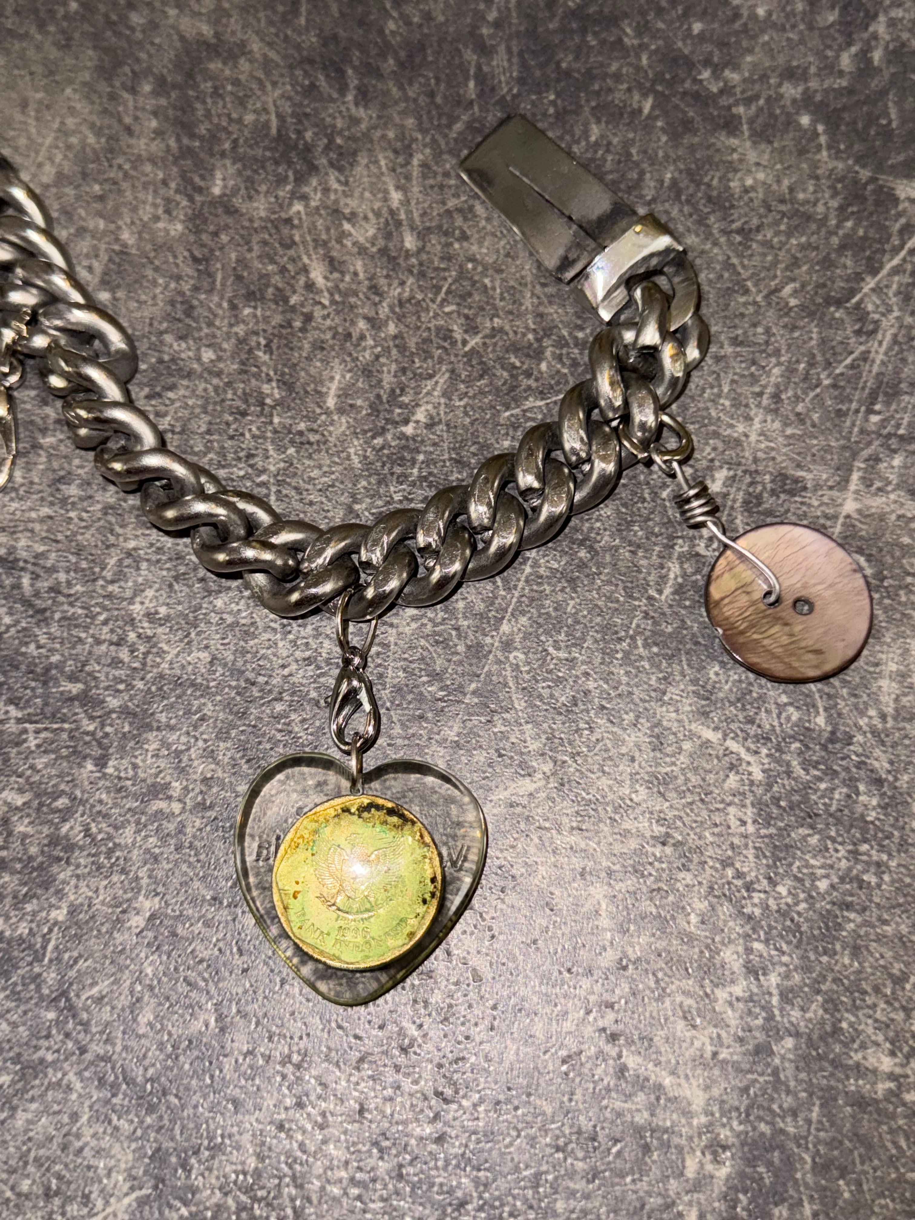 このアクセサリーもまた、「過去を知り、今を愛し、未来へ祈る」という思いを込めて生まれたもの。コインの持つ歴史的な重みと、ハートのやさしさが、身につける人の心にそっと寄り添うように仕上がっている。