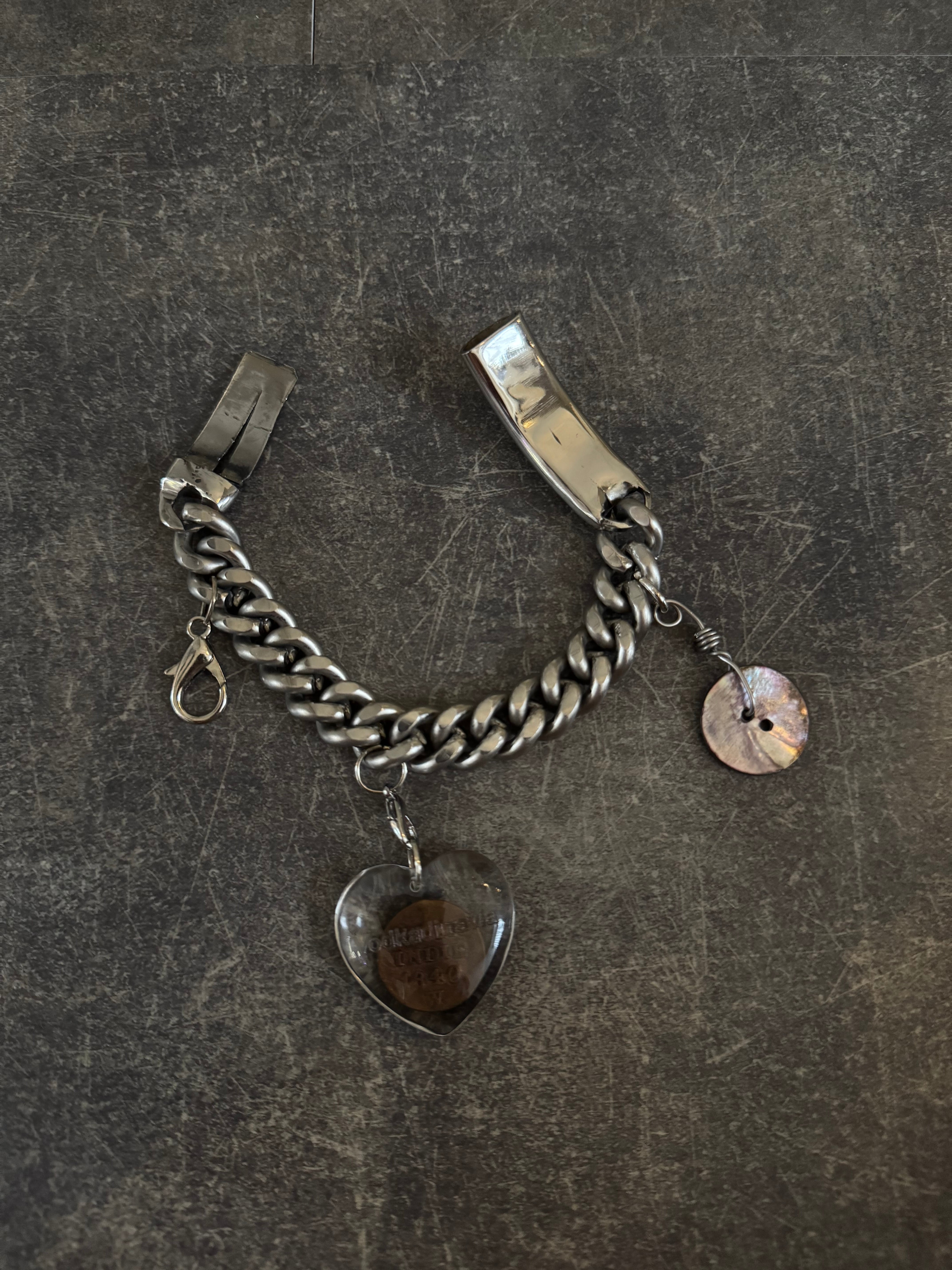 The bracelet is carefully handcrafted one by one by local artisans in a small workshop in Central Java, Indonesia. The material is a handmade stainless steel chain.