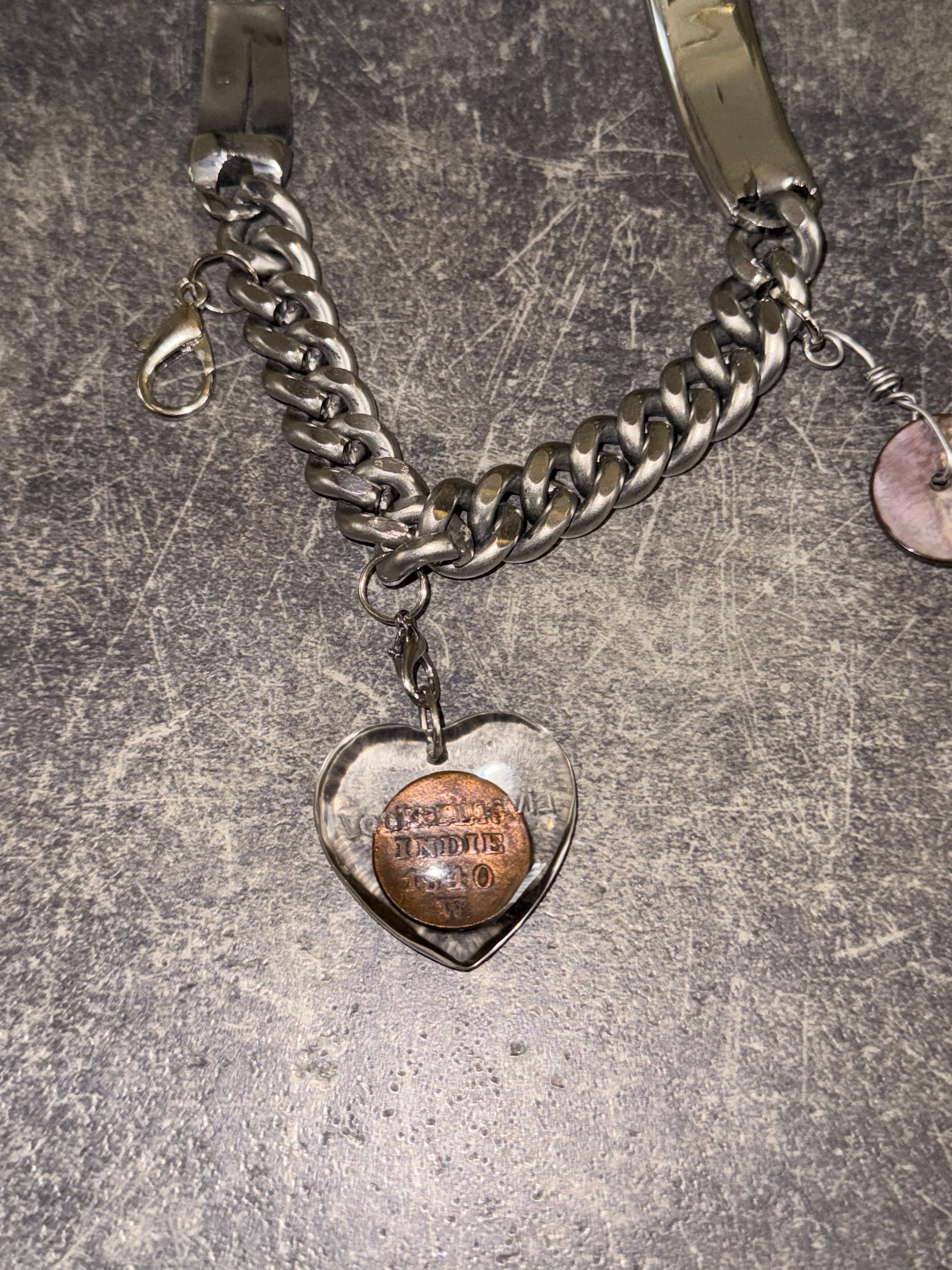このアクセサリーもまた、「過去を知り、今を愛し、未来へ祈る」という思いを込めて生まれたもの。コインの持つ歴史的な重みと、ハートのやさしさが、身につける人の心にそっと寄り添うように仕上がっている。